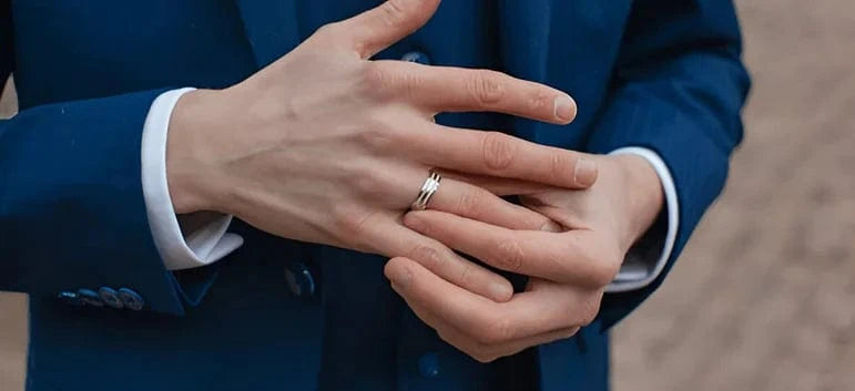 Most men’s rings are 4mm-8mm in width. And the width should be proportionate to his hand size and style. (You can make it even more stunning) Plus a thicker band (such as 6 to 8mm) provides more space for mens diamond wedding bands. Well, you get a bolder look.