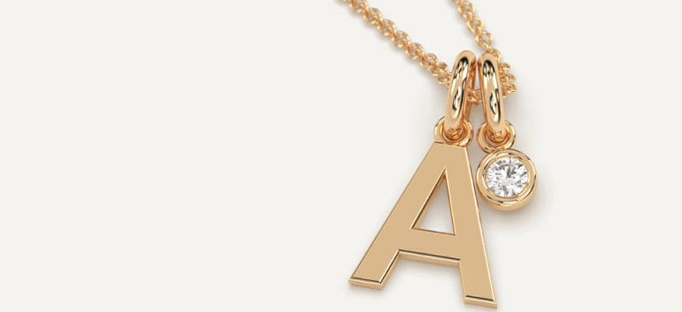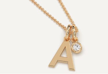 A personalized letter initial necklace is unique and pretty. It's made of 14k gold and can be bought in yellow gold and white gold.