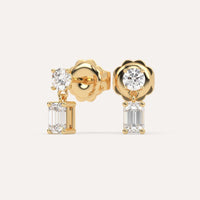 Everyday classic 1 carat total diamond drop earrings for women (approx. 10mm length), set with high brilliance white and eye clean lab diamonds in solid 14K yellow gold.