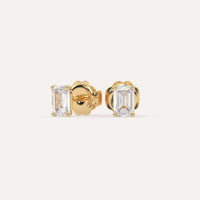 Classic 1 carat total diamond stud earrings for women, set with high brilliance white and eye clean natural diamonds in solid 14K yellow gold.