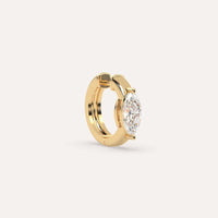Classic 1 carat single diamond hoop earring for women or men, set with a high brilliance white and eye clean natural diamond in solid 14K yellow gold.