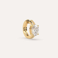 Classic 1 carat single diamond hoop earring for women or men, set with a high brilliance white and eye clean natural diamond in solid 14K yellow gold.
