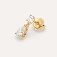 Everyday classic 1 carat total diamond drop earring for women (approx. 14mm length), set with high brilliance white and eye clean lab diamonds in solid 14K yellow gold.