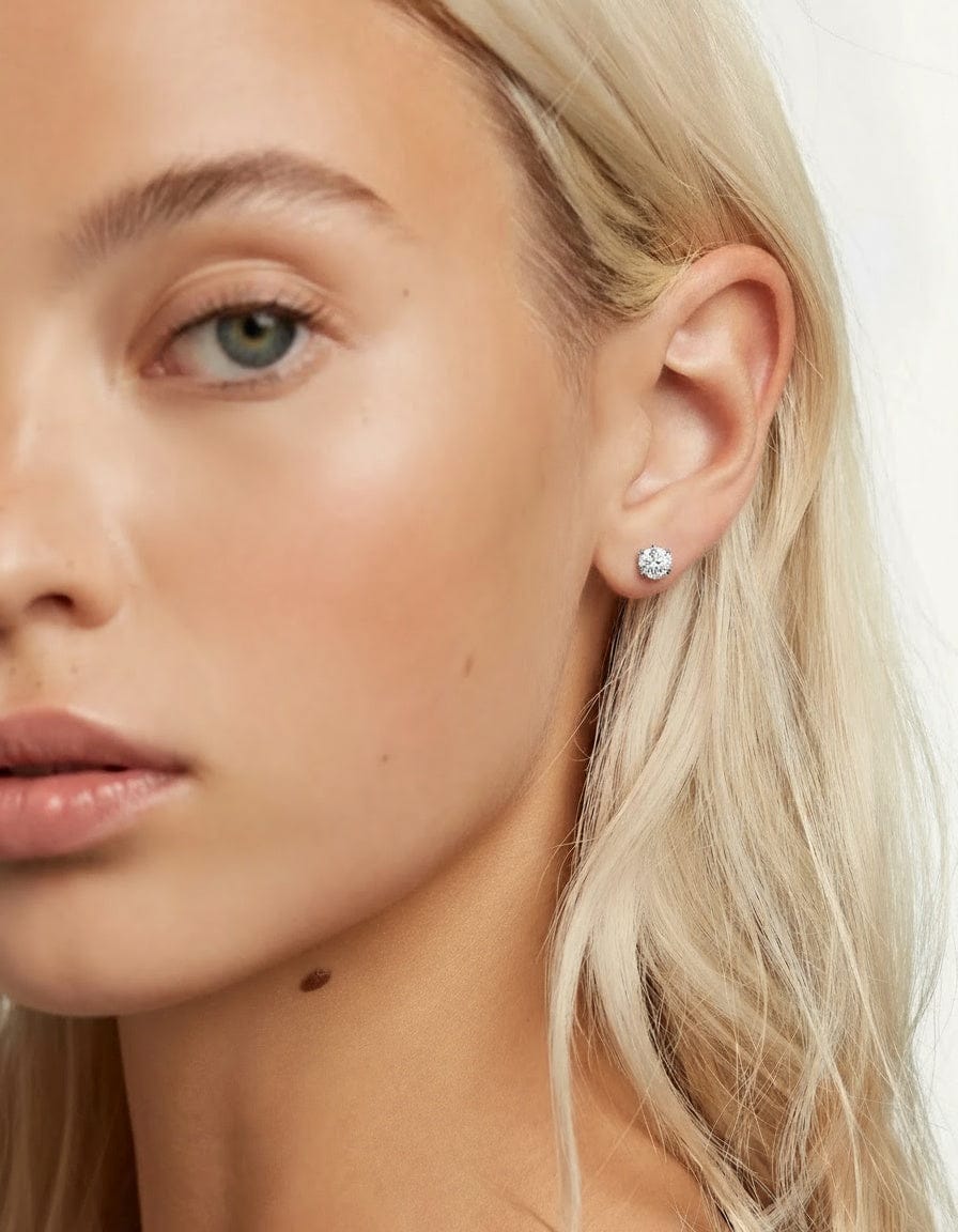 Everyday diamond stud earrings made for life. The top quality 1 carat total lab grown diamonds are colorless, eye clean and exceptionally sparkling, set in solid 14K white gold with easy use butterfly backings.