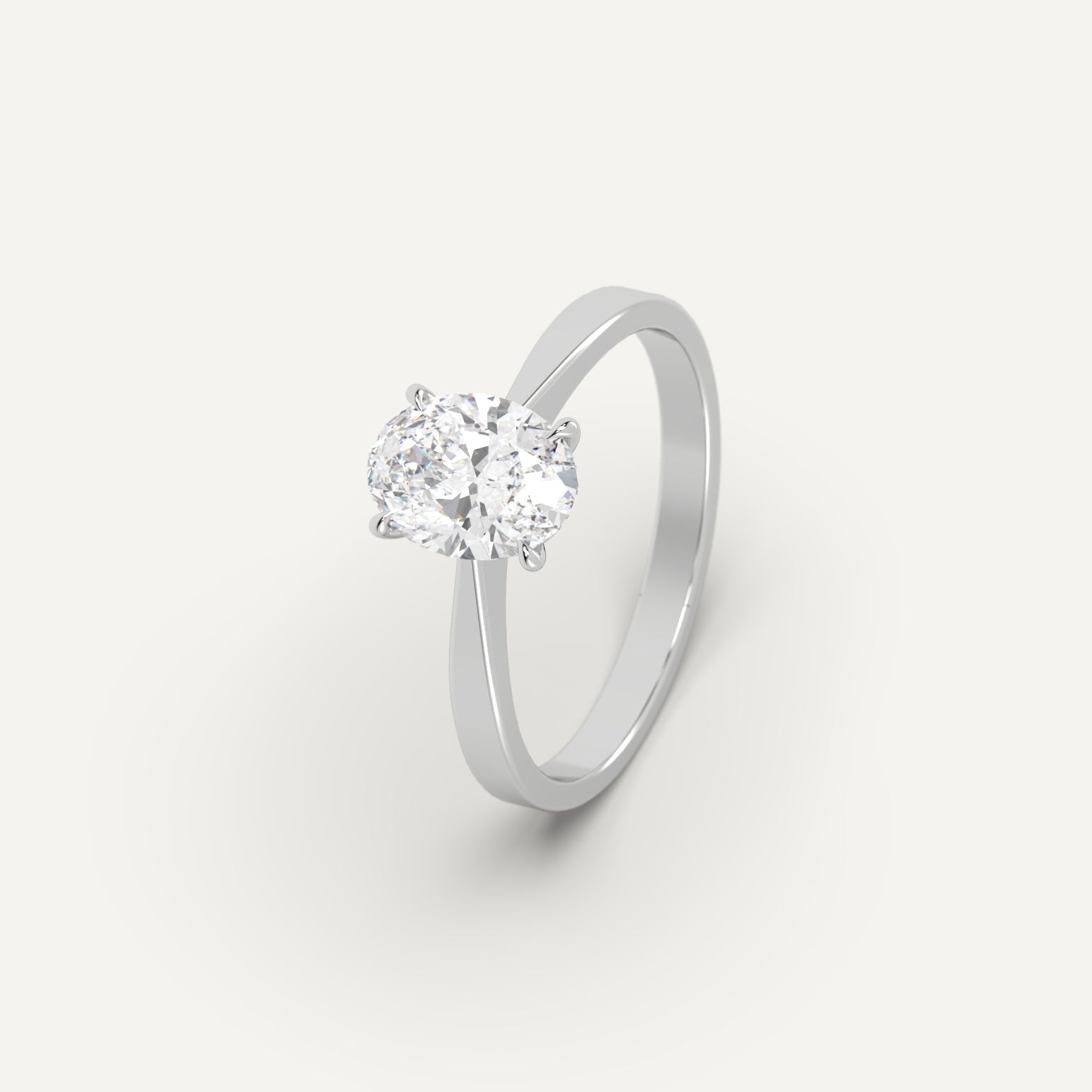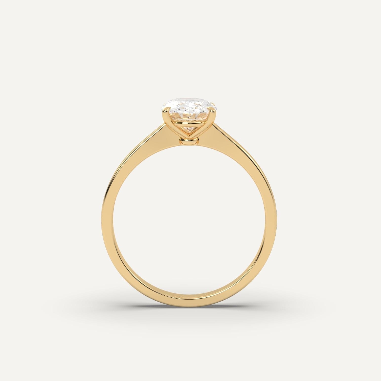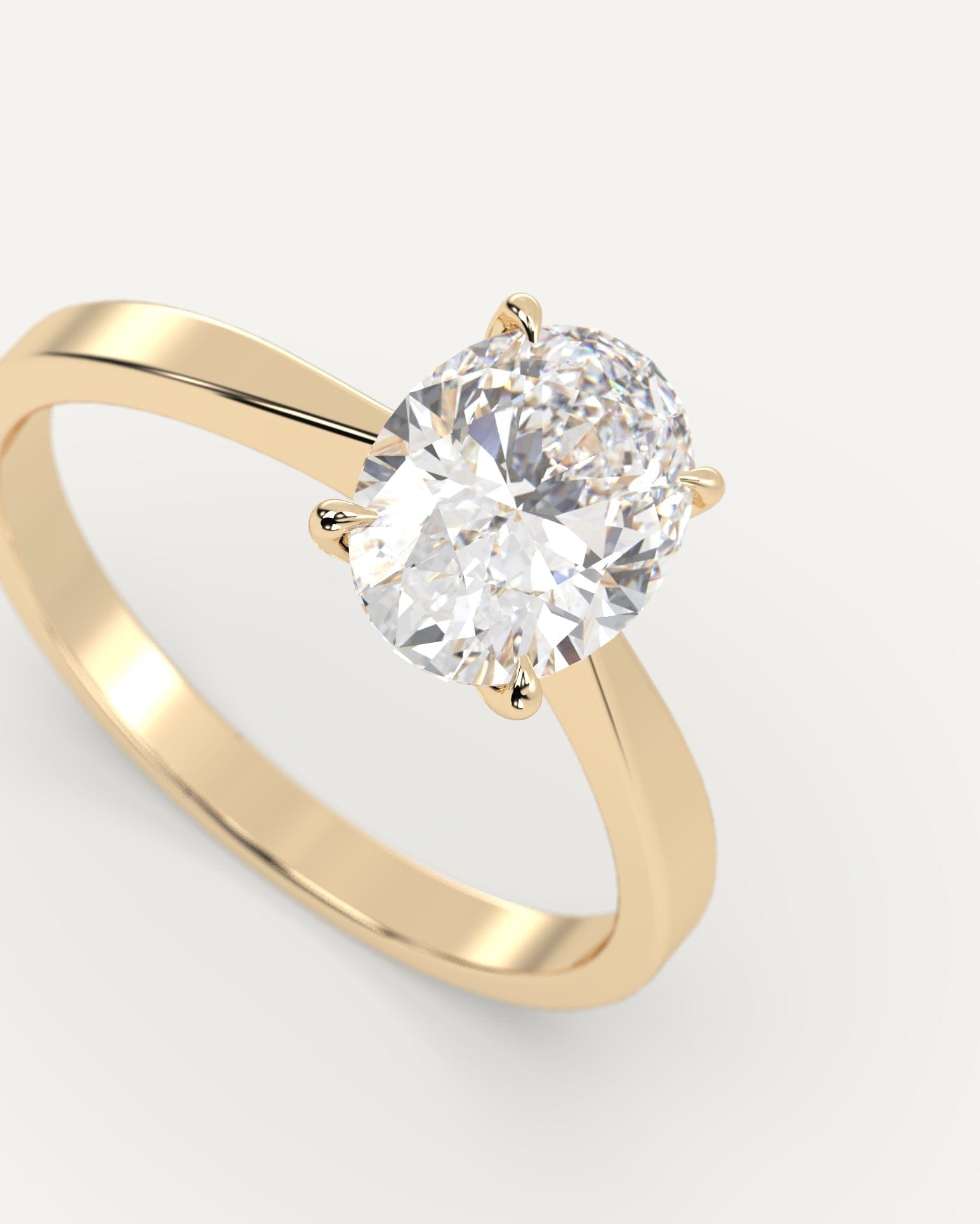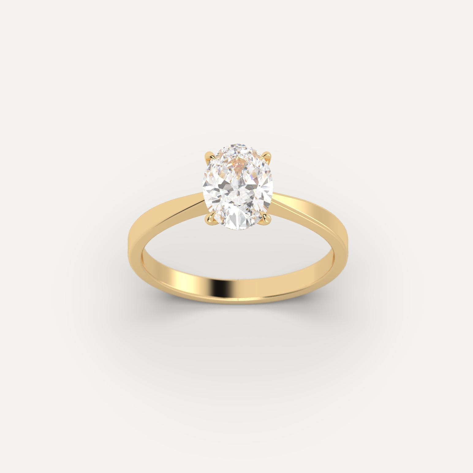 Cathedral 1 carat oval cut engagement ring, set with a high brilliance white and eye clean natural diamond in solid 14K yellow gold.