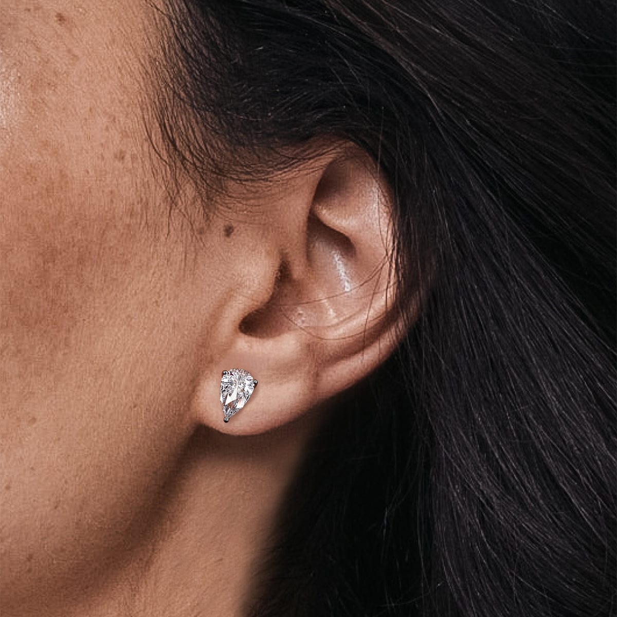 Classic 2 carat single diamond stud earring for women or men, set with a high brilliance white and eye clean natural diamond in solid 14K white gold.