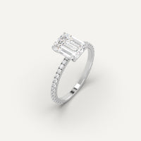 Pave 2 carat emerald cut engagement ring, set with a high brilliance white and eye clean natural diamond in solid 950 platinum