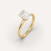 Hidden Halo 2 carat emerald cut engagement ring, set with a high brilliance white and eye clean natural diamond in solid 14K yellow gold.