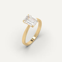 Cathedral 2 carat emerald cut engagement ring, set with a high brilliance white and eye clean natural diamond in solid 14K yellow gold.