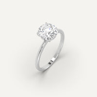 Solitaire 2 carat round cut engagement ring, set with a high brilliance white and eye clean natural diamond in solid 14K white gold.