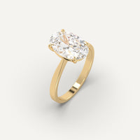 Cathedral 3 carat oval cut diamond engagement ring, set with a high brilliance white and eye clean clarity enhanced natural diamond in solid 14K yellow gold.