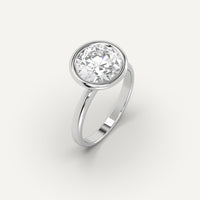 Bezel 3 carat round cut engagement ring, set with a high brilliance white and eye clean lab diamond in solid 950 platinum.