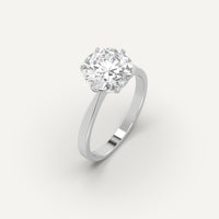 Cathedral 3 carat round cut engagement ring, set with a high brilliance white and eye clean natural diamond in solid 14K white gold.