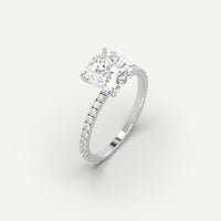 Pave 3 carat cushion cut diamond engagement ring, set with a high brilliance white and eye clean clarity enhanced natural diamond in solid 950 platinum.