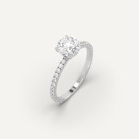 Pave 1.33 carat round cut diamond engagement ring, set with a colorless, clarity enhanced natural diamond in solid 14K white gold.