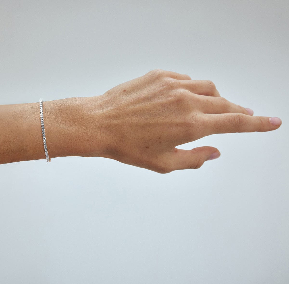 Classic 5 carat tennis bracelet for women, set with a high brilliance white and eye clean lab diamonds in solid 14K white gold.