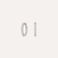Timeless, everyday 1/2 carat total diamond 14mm hoop earrings for women, set with high brilliance white and eye clean natural diamonds in solid 14K white gold.