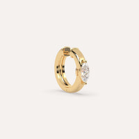 Classic 1/4 carat single diamond hoop earring for women or men, set with a high brilliance white and eye clean natural diamond in solid 14K yellow gold.