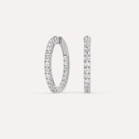 Timeless, everyday 2 carat total diamond 24mm hoop earrings for women, set with high brilliance white and eye clean natural diamonds in solid 14K white gold.