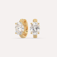 Classic 3 carat total diamond hoop earrings for women, set with high brilliance white and eye clean lab diamonds in solid 14K yellow gold.