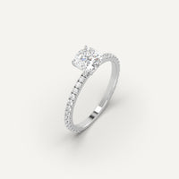 Pave 1 carat cushion cut diamond engagement ring, set with a high brilliance white and eye clean clarity enhanced natural diamond in solid 950 platinum.