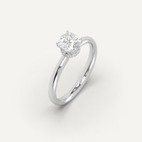 Hidden Halo 1 carat cushion cut diamond engagement ring, set with a high brilliance white and eye clean clarity enhanced natural diamond in solid 950 platinum.