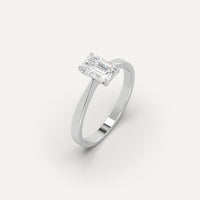 Cathedral 1 carat emerald cut engagement ring, set with a high brilliance white and eye clean natural diamond in solid 14K white gold.