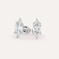 Classic 4 carat total diamond stud earrings for women, set with high brilliance white and eye clean lab diamonds in solid 14K white gold.