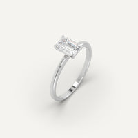 Whisper Thin 1 carat emerald cut diamond engagement ring, set with a high brilliance white and eye clean clarity enhanced natural diamond in solid 950 platinum.
