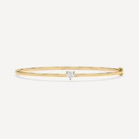This minimalist solitaire diamond bangle bracelet is designed with a 2.3" (6cm) oval diameter that won't spin around and fits any wrist. Perfect alone or stacked, it's a versatile touch of sophistication.
