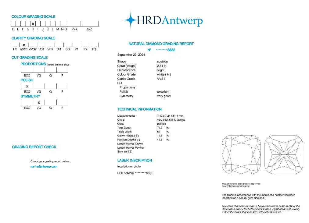2.51 carat H-VVS1 Cushion Cut Diamond Ring