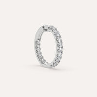 Timeless, everyday 1 1/2 carat total diamond 26mm, single hoop earring for women, set with high brilliance white and eye clean lab diamonds in solid 14K white gold.