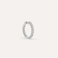 Timeless, everyday 1/2 carat total diamond 18mm, single hoop earring for women, set with high brilliance white and eye clean lab diamonds in solid 14K white gold.