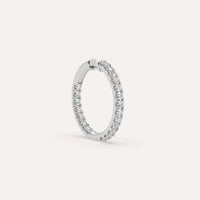 Timeless, everyday 1 carat total diamond 24mm, single hoop earring for women, set with high brilliance white and eye clean lab diamonds in solid 14K white gold.