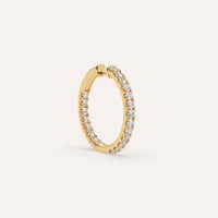 Timeless, everyday 1 carat total diamond 24mm, single hoop earring for women, set with high brilliance white and eye clean lab diamonds in solid 14K yellow gold.