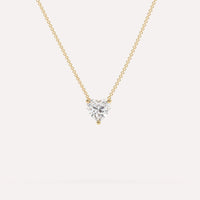 Classic 1 carat floating diamond necklace for women, set with a high brilliance white and eye clean lab diamond in solid 14K yellow gold.