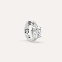 Classic 1 carat single diamond hoop earring for women or men, set with a high brilliance white and eye clean lab diamond in solid 14K white gold.
