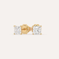 Classic 2 carat total diamond stud earrings for women, set with high brilliance white and eye clean lab diamonds in solid 14K yellow gold.