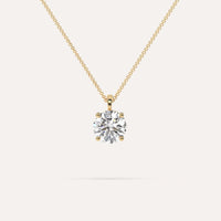 Classic 2 carat simple diamond pendant necklace for women, set with a high brilliance white and eye clean lab diamond in solid 14K yellow gold.