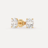 Classic 3 carat total diamond stud earrings for women, set with high brilliance white and eye clean lab diamonds in solid 14K yellow gold.