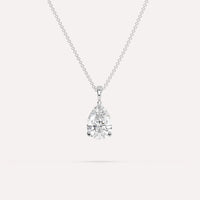 Classic 3 carat simple diamond pendant necklace for women, set with a high brilliance white and eye clean lab diamond in solid 14K white gold.