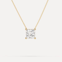 Classic 3 carat floating diamond necklace for women, set with a high brilliance white and eye clean lab diamond in solid 14K yellow gold.