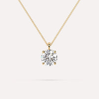 Classic 3 carat simple diamond pendant necklace for women, set with a high brilliance white and eye clean lab diamond in solid 14K yellow gold.