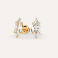 Classic 4 carat total diamond stud earrings for women, set with high brilliance white and eye clean lab diamonds in solid 14K yellow gold.