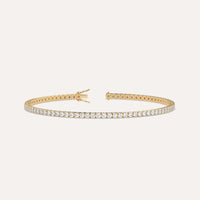 Classic 3 carat tennis bracelet for women, set with a high brilliance white and eye clean lab diamonds in solid 14K yellow gold.