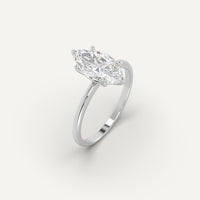 Solitaire 2 carat marquise cut diamond engagement ring, set with a high brilliance white and eye clean clarity enhanced natural diamond in solid 14K white gold.