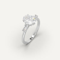 3-Stone 2 carat oval cut engagement ring, set with a high brilliance white and eye clean lab diamond in solid 14K white gold.