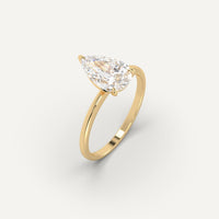 Solitaire 3 carat pear cut engagement ring, set with a high brilliance white and eye clean natural diamond in solid 14K yellow gold.