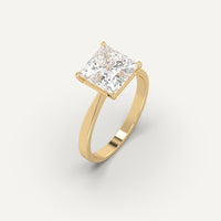 Cathedral 3 carat princess cut engagement ring, set with a high brilliance white and eye clean natural diamond in solid 14K yellow gold.