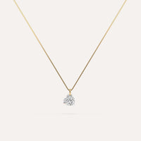 Classic and ultra-minimalist floating diamond necklace with a stunning 1/2 carat real lab grown heart diamond in 14K yellow gold. The venetian chain necklace is 16 inches and passes through the diamond for a uniquely clean aesthetic. A real floating diamond!